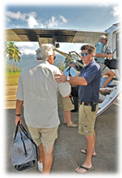 You will have breakfast at your hotel. In the morning, you will be transfered to Albrook Local Airport to board our charter flight to the Lodge. We normally charter Twin Otters, Islanders, Caravans, or Senecas, depending on the number of people and amount of cargo going to the Lodge. The charter flight will land at the Piñas Bay airstrip approximately fifty minutes after take off. You will take a short walk to our tractor-trailer, which will transport you to a panga for the short boat trip to the Lodge.